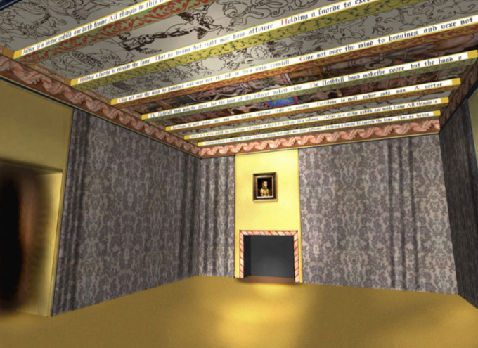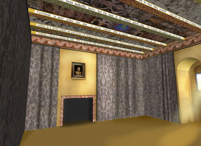 The interior layout Paul modelled for a Gothic Manor with proposed fern fresco. Client's own fireplace, mirror and carpet included in this visualisation.