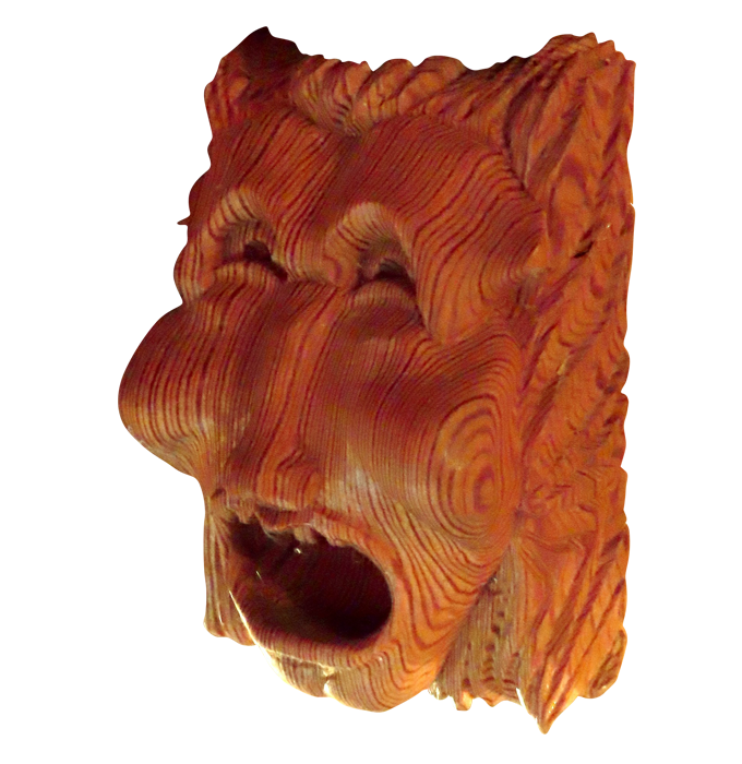 Three grotesque pitch pine carvings for a privately owned castle in Fife, Scotland